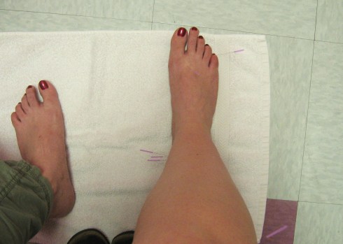 That afternoon I saw the chiro and she adjusted my left hip and massaged the ligaments surrounding my uterus. She also suggested acupuncture to help align my uterus and I was game. Six needles in my right foot and leg.