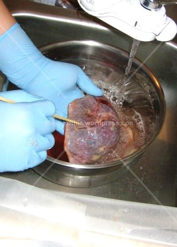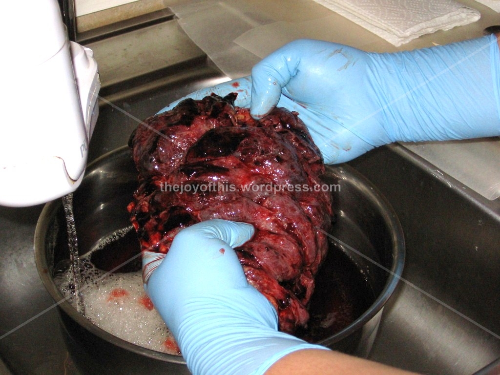 She removed all the excess blood and clots by thoroughly washing my placenta under running water (this took quite a bit of time).