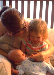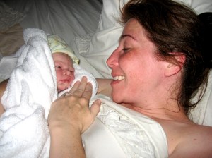 Two hours after I gave birth, Noah and I were given a clean bill of health and went home! Awesome. And here’s something that was really cool. I was glad that I got to go home and put Zoe to bed that night. That was a big worry I had about labor, if I had a long labor and we were gone for hours into the night, how would Zoe respond to someone else putting her to bed? (only Peter and I had ever put her to bed at night) Fortunately, my labor was so fast we were home by 8:30pm and so I got to read Zoe her stories and say prayers and kiss her goodnight. That was a special memory for me. I don’t know how to describe it, but it was like…hey, yeah, I gave birth two hours ago, but no sweat, I’m home and putting my daughter to bed…that’s right, that’s how I roll. (C’mon I was on a natural birth high.)