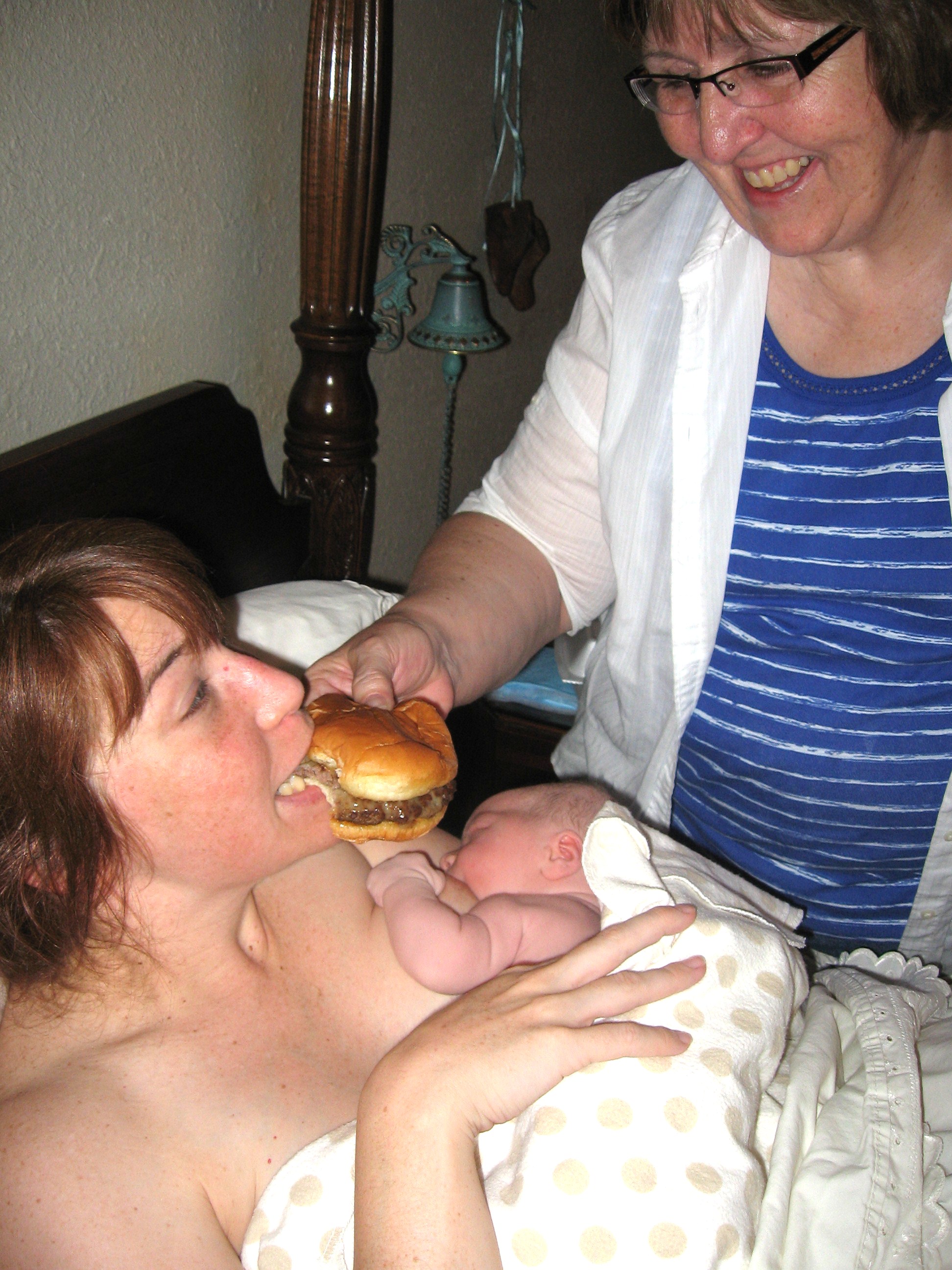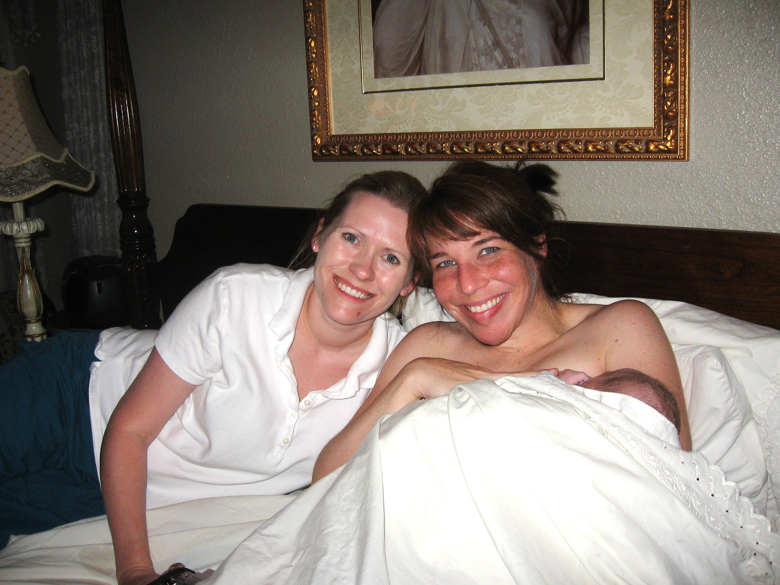 My sister finally arrived from Austin. (Who sits like that after they give birth? Apparently I wasn't in too much pain.)