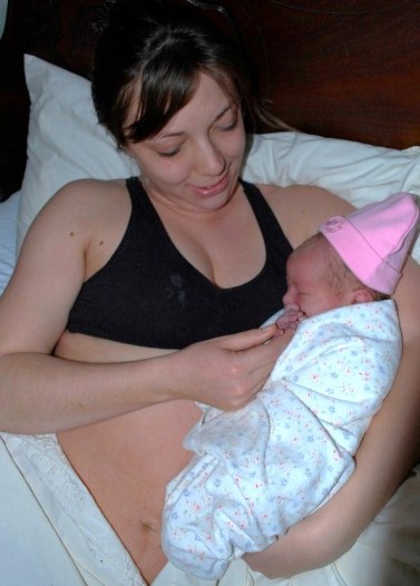 Meredith holding Ella moments after her birth