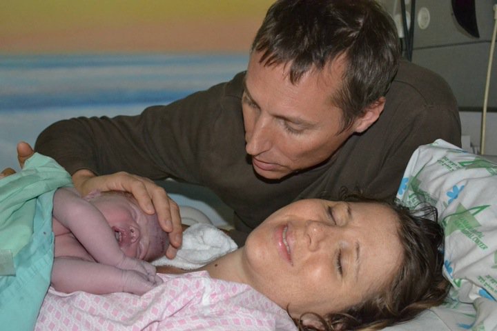 I started pushing at about 6:20 PM. After about 2 hours the doctor tells me to not worry that it will be a natural birth but that the baby was still not showing up. I asked to sit on a birth stool. I pushed very strongly, as much as I could, but my strength was so low; drinking coca-cola in between and also the flower remedy helped give me strength. The doctor decided to give me a low amount of pitocin to help strengthen my contractions. With a VBAC it can be very dangerous to have pitocin because it can possibly cause too much stress to the uterus but it was a low amount and it did help quite a bit. At 10 PM the baby was finally starting to descend into the birth canal but she was OP – she was looking at the sky. The doctor used the vacuum to pull her out, but he did not succeed, the baby was stronger. In fact, on his last attempt – the doctor fell on his back. Then he used forceps. I will not forget that feeling. I thought my body was being cut in half. I pushed very strongly and finally my baby arrived! At 11:03 PM our little girl was born – 4.600 kilo 55 cm (10 lbs 1 oz and 21.5 inches long).